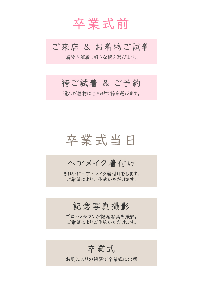 | 袴 着付け(袴のみレンタル・持ち込み) | 5,500円(税込) |