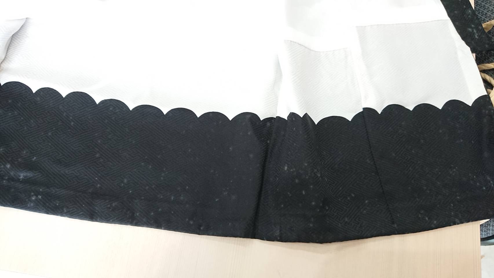 カビ落としで奇麗にカビの菌も除去させていただき、今から七五三用にお袖をお直しし、肩上げをさせていただきます。